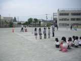 成城警察署の方々をお招きして、交通安全教室を行いました。1年生の子どもたちは、横...