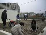 小雨の中、屋上田んぼの田おこし・代かき作業が行われました。 今年度も郷土研究会と...