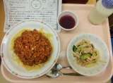今日は、スパゲティーヘルシーミートソース、牛乳、もやしのシャキシャキサラダ、ぶど...