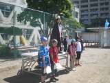 9時25分、お母さんたちに見送られて、幼稚園年長さんは、サンシャイン国際水族館に...