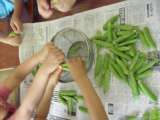 2年生がグリーンピースのさやむき体験をしました。 子どもたちは「どうやってむく...