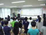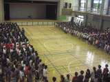 今日の音楽朝会では、全校児童が体育館に集まり、「あの青い空のように」を合唱しまし...