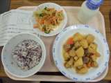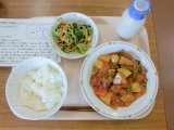今日は、ごはん、牛乳、酢豚、野菜のからしじょうゆかけです。 メモは、酢豚について...