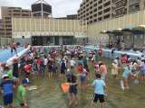 3年生が屋上プールでヤゴ採りをしました。なかなかできない経験です。