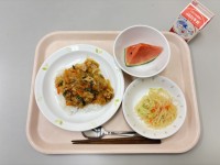 【6月17日の給食】*キムチ丼*春雨サラダ*果物(小玉スイカ)*牛乳