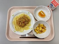 【6月25日の給食】*ツナおろしスパゲティ*豆入り野菜チップス*果物(バレンシア...