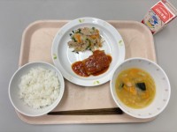 【6月26日の給食】*有機米のご飯*イカのチリソース*チャーホーサイ*きゃべつと...