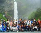 8時30分、華厳の滝。天気曇り。毎秒3トンの水量。いつもより多いそうです。子ども...
