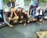 9時30分、湯元源泉でお湯をさわって、温泉気分を味わいました。あったかいといい気...