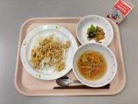 【7月10日の給食】*キムチチャーハン*油淋鶏*わかめスープ*牛乳