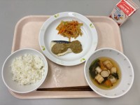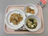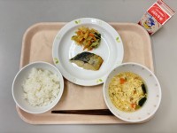 【7月8日の給食】*ご飯*魚の西京焼き*カリカリ油揚げのサラダ*かきたま汁*牛乳