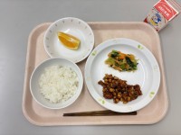 【7月9日の給食】*山坂達者飯*生揚げの中華煮*果物(りんご)*牛乳