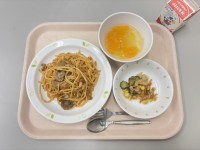 【7月17日の給食】*スパゲティナポリタン*ごまだれサラダ*フルーツポンチ*牛乳