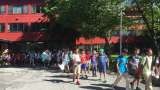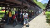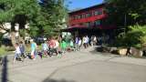 昼食の時間になりました。 子どもたちが続々と集まってきました。 子どもと引率者で...