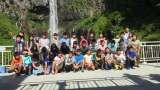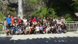 華厳の滝の前で記念撮影をしました。 後の学校がつかえているので、急いで撮ります。...