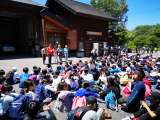 記念写真の撮影後、子どもたちは東照宮内のガイドに挑戦。 説明はわかりやすく、仲間...