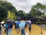 日光江戸村に到着しました。雨が降っています。でも、この後、子どもたちは傘をささず...