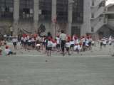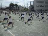 いよいよ応援団の休み時間練習が校庭で始まりました。応援団の声に合わせて赤組も白...