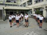 放課後、教員が審判講習会を行いました。徒競走で着順を決めます。誰が1着を担当する...