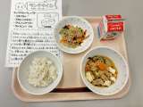 【9月25日の給食】 *チンジャオロース丼 *たまごとチンゲンサイのスープ *果...