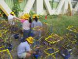 1年生がアサガオの種を取りに行きました。 この暑さで、まだ花がさいているものもあ...