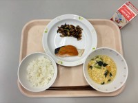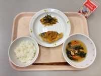 【9月24日の給食】*ご飯*魚の甘味噌焼き*大豆の磯煮*かきたま汁*牛乳