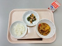 【9月25日の給食】*ご飯*肉じゃが*野菜ののり酢和え*牛乳