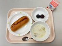 【9月29日の給食】*ピザドッグ*白菜のクリームスープ*果物(巨峰)*牛乳