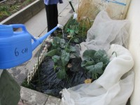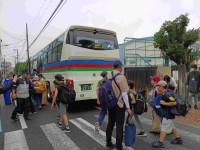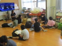 避難訓練で、6年生(1組,3組,4組,六組)の代表児童が起震車に乗って震度7の地...