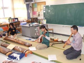 日本の伝統文化の体験を5年生を中心に行っています。華道、茶道、囲碁将棋、和楽器など10以上のトピックを用意し、子ども達がそれぞれ一番興味を持ったものについて体験し、学習を深めます。 この学習は、多くの地域の方のボランティアによって、成立しています。