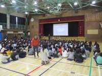 2時間目は、1~3年生・六組の児童が体育館であいさつをテーマにした音楽劇を見まし...