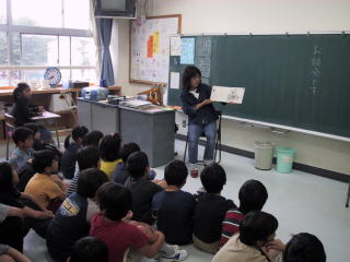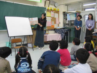 平成12年から、保護者のボランティアによる「お話会」を行っています。朝15分の読み聞かせや、 1単位時間のパネルシアターなど、保護者の創意工夫による活動です。読書好きの子供に育っています。
