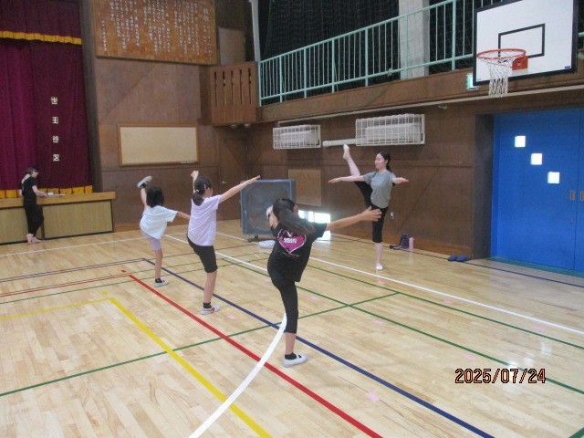 V字バランスやターンなどバレエの動きをリズミカルに行いました。