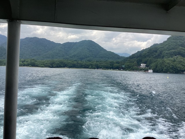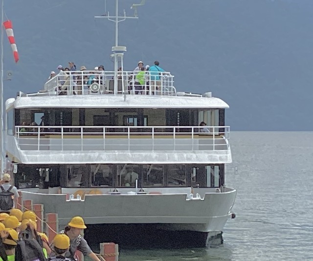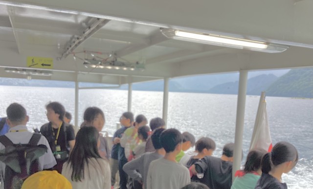 菖蒲が浜乗船場から立木桟橋まで中禅寺湖を船で渡りました。みんなで船に乗る貴重な体験、楽しんでいました。