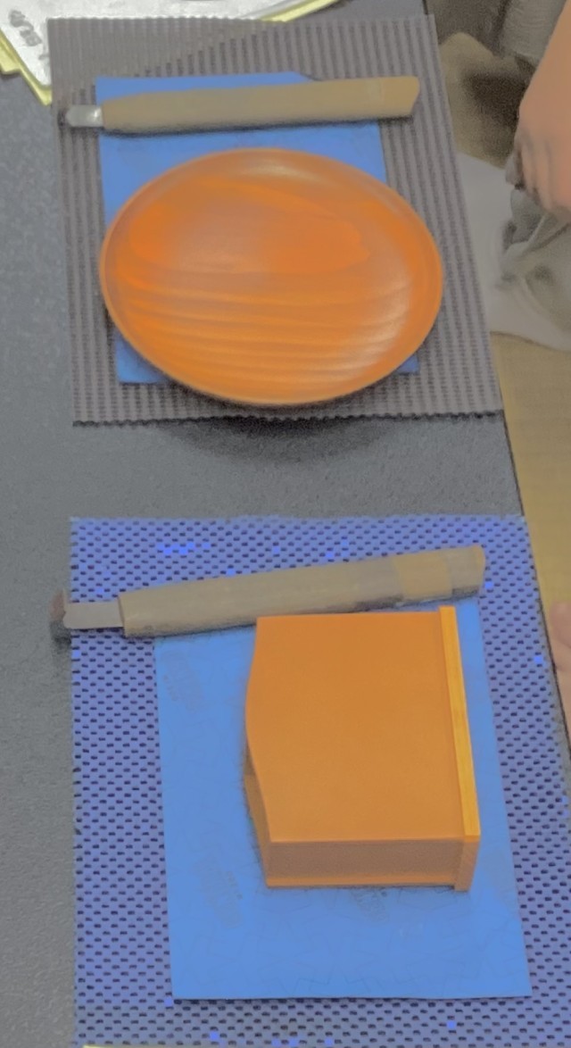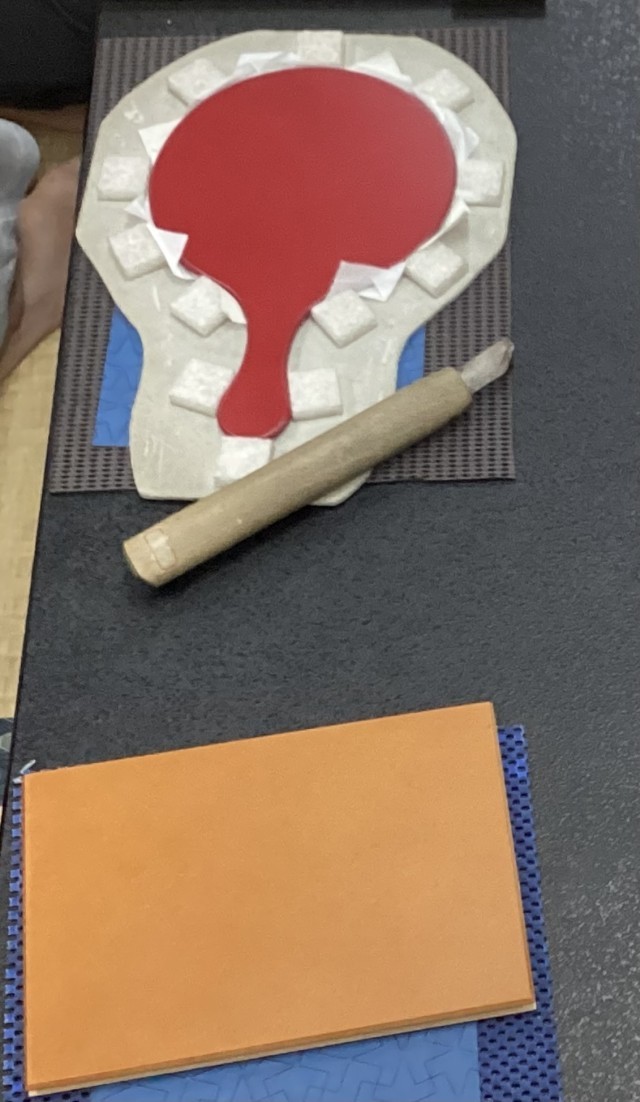 自分で考えてきた絵を写し、専用の彫刻刃を使って丁寧に
