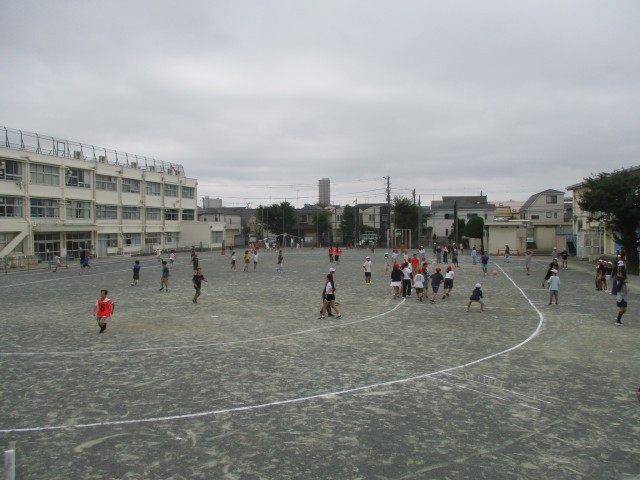 今学期最初の麦っ子の時間、5年生・6年生が体を動かして朝の時間を過ごしました。
