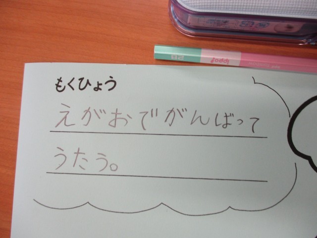 1年生の教室では音楽祭に向けて自分のめあてを考えていました。