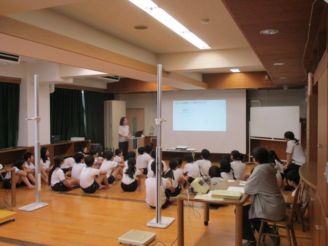 計測の前に、養護教諭の先生から保健についての話を聞きました。