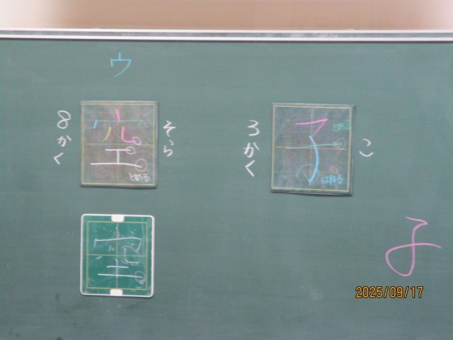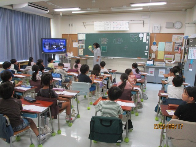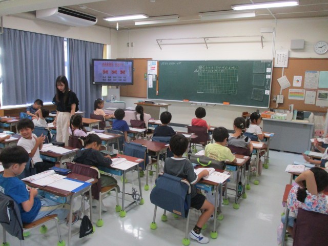 国語では漢字の学習をしていました。一画ずつ特徴をみんなで確認しながら学習を進めていました。