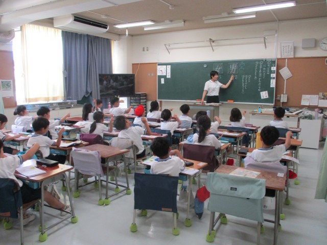 漢字の「男」「女」の漢字の書き方を担任の先生と学習していました。