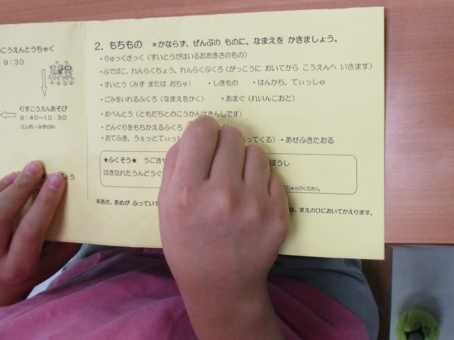 教室では、しおりをみんなで読みながら明日の確認をしていました。