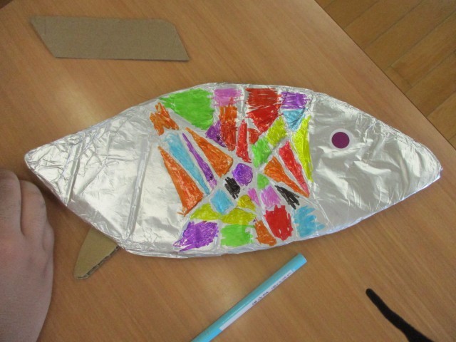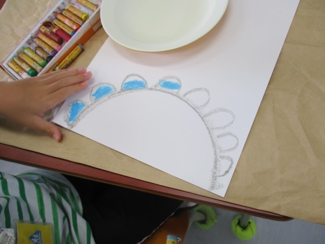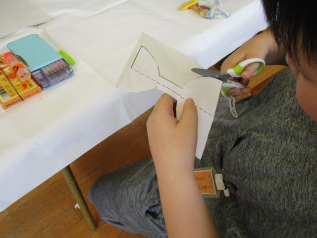 線に沿って鋏で切ったり、枠からはみ出ないように色を塗ったり、それぞれのグループのめあてに沿って作品づくりに取り組んでいました。