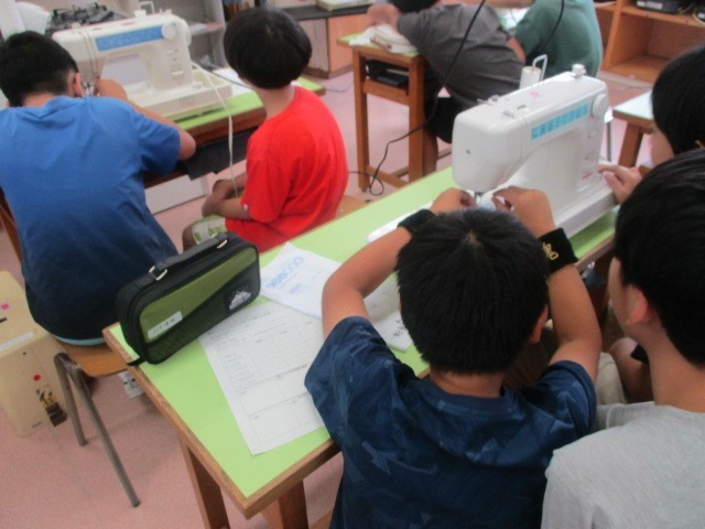 教師が通し方の手順を画像や文章を拡大して伝えています。