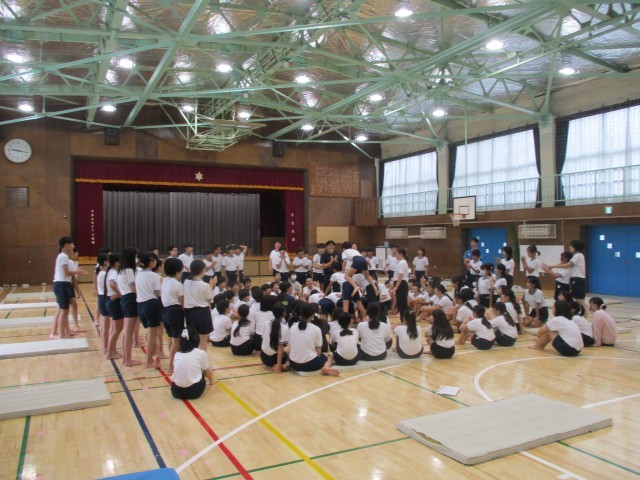 6年生は体育館で運動会に向けて、組体操に取り組んでいました。