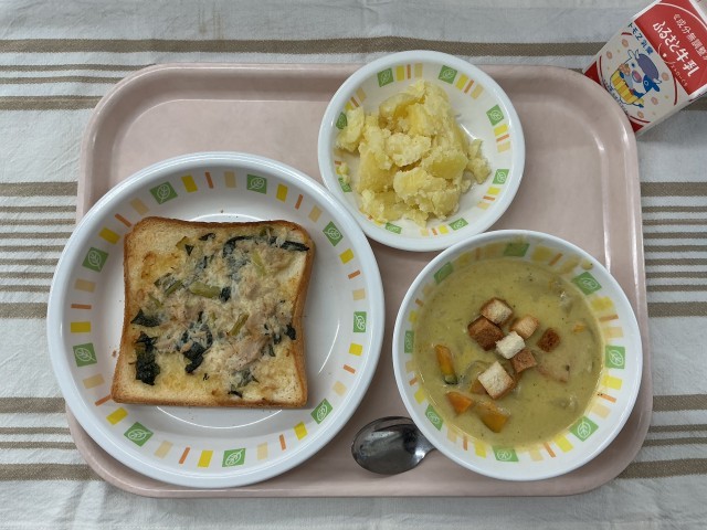 こまツナマヨトースト パンプキンシチュー 有機じゃが芋の粉吹芋 牛乳