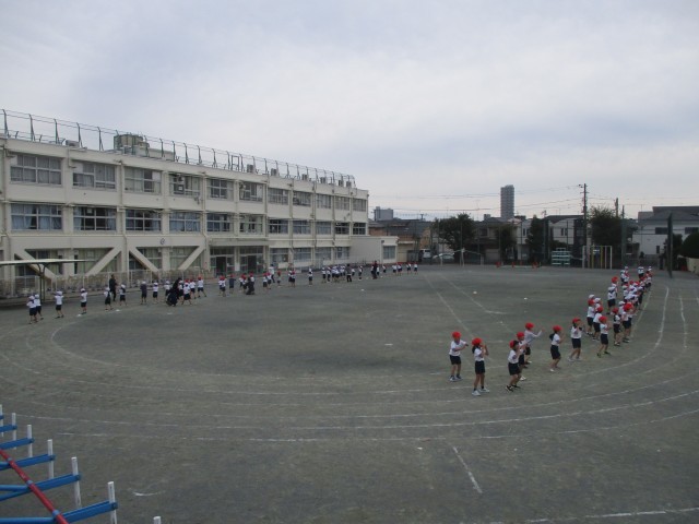 3時間目に校庭で1年生が運動会の表現の練習を行いました。
