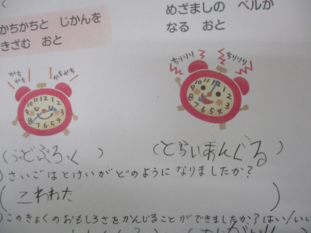 聴こえてくるウッドブロックやトライアングルの音色が何を表しているか想像しながら音楽を聴きました。