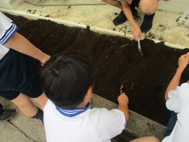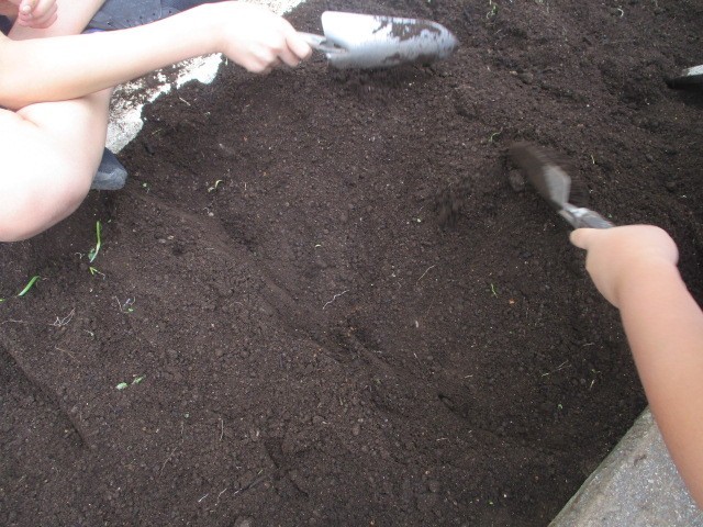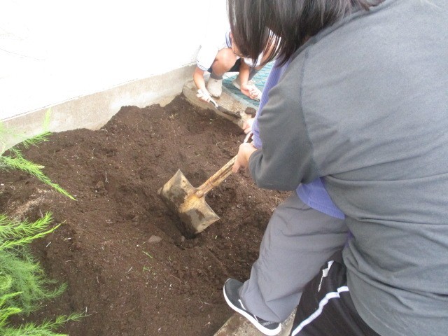 丁寧に掘り返して山をつくりふわふわの土になりました。