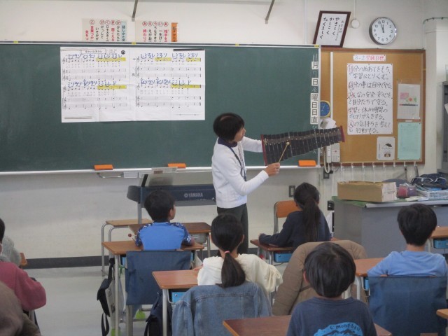 3年生は教室で講師の先生と音楽の学習をしていました。