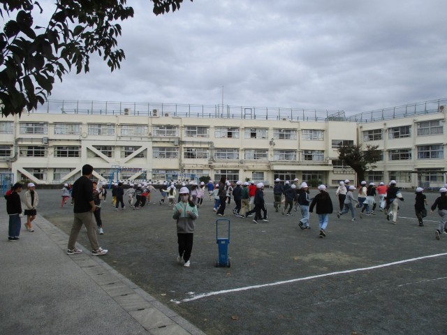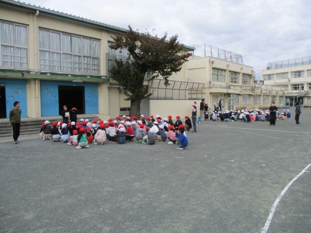 今朝は2年生と4年生が校庭・体育館を使って交流遊びをします。
